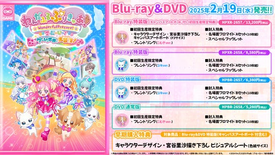 興行収入が12億円を突破し、『映画プリキュア』シリーズでは『映画プリキュアオールスターズF』に次ぐ歴代興行収入第2位を記録した『わんだふるぷりきゅあ!ざ・むーびー!ドキドキ(ハート)ゲームの世界で大冒険!』のBlu-ray&DVDが早くも、2025年2月19日に発売決定しました!