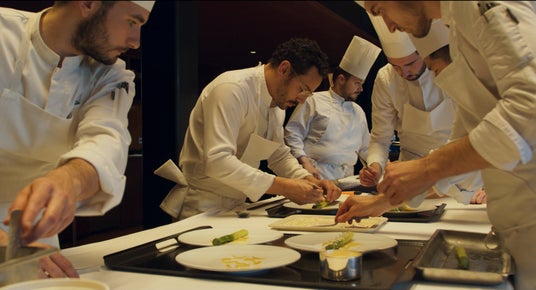 数ある三つ星レストランの中でも、世界の美食家たちが生涯で一度は訪れたいと願うことでも名を馳せる〈トロワグロ〉とは、トロワグロ・ファミリーが、1930年にフランスの中部で創業したフレンチレストランだ。映画では、2017年に建築家パトリック ・ブシャンがウーシュに建てた、周囲の自然と解け合いながらそこにモダンな一筆を加えた新しいレストランを主な舞台に、オーナーシェフ3代目のミッシェルと4代目のセザール、さらにスタッフたちの終わりのない食への追求の日々を捉える。