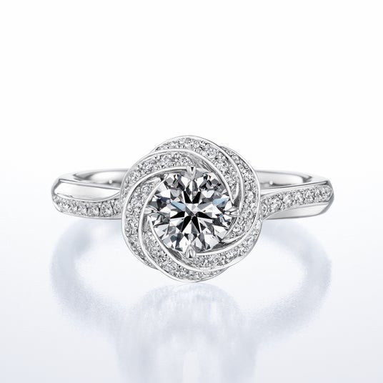センターダイヤモンドとメレダイヤモンドの間にわずかな空間があり、多くの光を取り込むことでセンターダイヤモンドがより一層際立ちます。