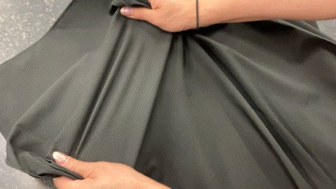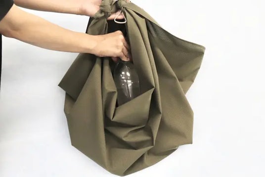 縦横斜めにストレッチ性があり、ふろしきに包むものを選びません。よいストレッチ素材の条件は伸びること以上に戻ることが大事です。伸縮性のあるポリエステル素材を使用することにより戻りも強く、形状を保つことができました。
