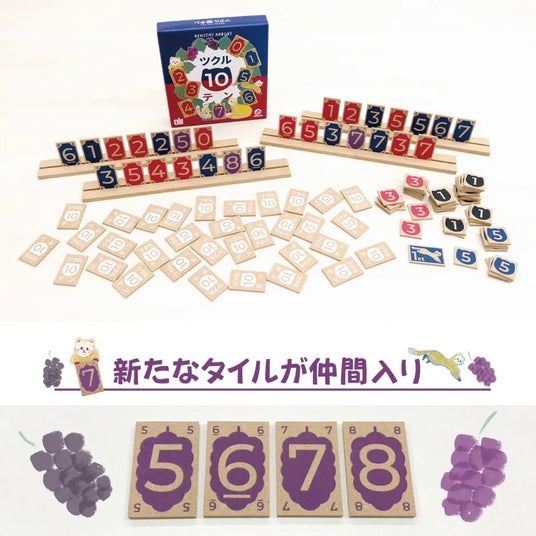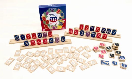 ボードゲームの名作 ツクルテンの進化版 ツクル10テン(ツクルテンテン)赤の0が1枚と4枚のテンテンタイルを追加。その結果、強弱のバランスが整いゲームの面白さが倍増!トランプサイズの紙製から、24mmx38mmの木製タイルに進化しました。名作 ツクルテンは、数字タイルの赤と青1~7(各4枚)の56枚で遊ぶボードゲームです。手札7枚プラス1枚で10になれば、WINというシンプルなルールでハマる人が続出しました。今回そのツクルテンが『 ツクル10テン(ツクルテンテン)』に進化を遂げ発売されることになりました。