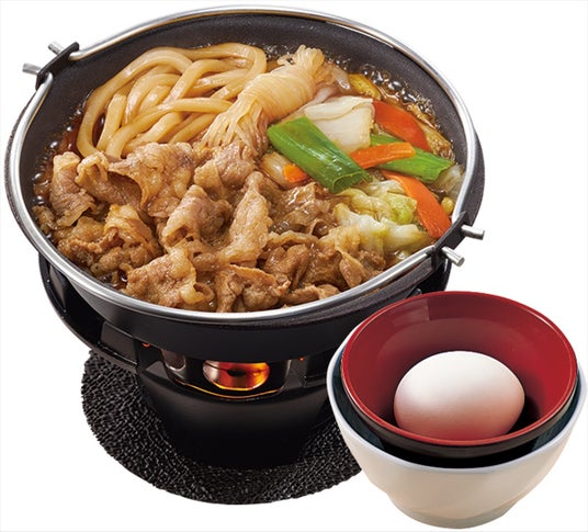 すき家では毎年この季節に、お肉や半日分の野菜※1、うどんなどのたっぷりの具材をご堪能いただける「牛すき鍋定食」を販売しています。特製の割り下がしみ込んだ白菜や白滝、柔らかなお肉を一口頬張ると、牛肉の旨みと野菜の甘みが口いっぱいに広がります。「牛すき鍋定食」にはたまごが付いてくるため、お好みで具材を溶き卵にくぐらせたり卵とじにしたりしてお楽しみください。