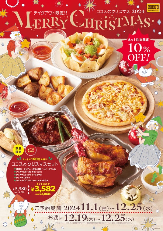 【ココス】~ココスのクリスマス2024~テイクアウト限定のお得な商品が多数登場!セットは最大160円お得に!ネット注文でさらに10%オフ!