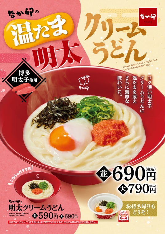 ぜひこの機会に、お近くのなか卯やご家庭で、なか卯の「温たま明太クリームうどん」をお召し上がりください。