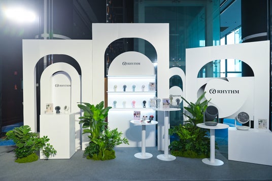 当日は、社長や営業責任者などが登壇し、リズムの「快適品」カテゴリーの製品を紹介するとともに、海外販売戦略・目標について共有しました。会場には製品体験ブースも設置され、参加者からは商品力に関心が寄せられました。