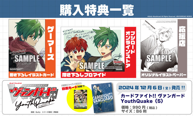 株式会社ブシロード(本社:東京都中野区、代表取締役社長:木谷高明)のグループ会社にあたる株式会社ブシロードワークス(本社:東京都中野区、代表取締役社長:新福恭平)は、『カードファイト!! ヴァンガード YouthQuake』第5巻と、『カードファイト!! ヴァンガード will+Dress D2』第2巻(電子専売)が本日12月6日(金)に同時発売することをご案内致します。