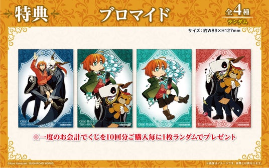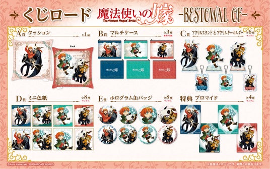 株式会社ブシロード(本社:東京都中野区、代表取締役社長:木谷高明)のグループ会社にあたる株式会社ブシロードクリエイティブ(本社:東京都中野区、代表取締役社長:成田耕祐)は、2024年12月13日(金)よりオンライン上で楽しめるくじ販売サービス「くじロード」にて「魔法使いの嫁-BESTOWAL OF-」オンラインくじの販売を開始することをお知らせいたします。