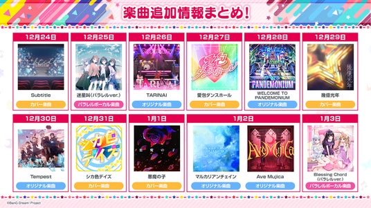 12月24日(火)から2025年1月3日(金)にかけて、12曲の追加を予定しております。