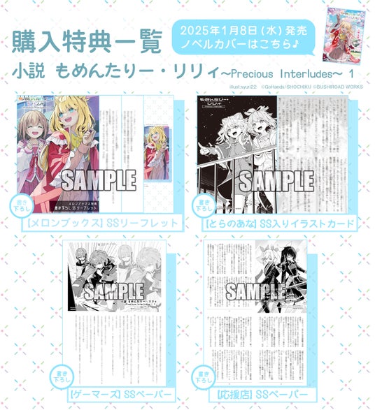 株式会社ブシロード(本社:東京都中野区、代表取締役社長:木谷高明)のグループ会社にあたる株式会社ブシロードワークス(本社:東京都中野区、代表取締役社長:新福恭平)は本日1月8日(水)に「ブシロードノベル」レーベルより『小説 もめんたりー・リリィ~Precious Interludes~』の第1巻が発売することをご案内致します。
