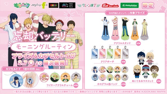 株式会社ブシロード(本社:東京都中野区、代表取締役社長:木谷高明)のグループ会社にあたる株式会社ブシロードクリエイティブ(本社:東京都中野区、代表取締役社長:成田耕祐)は、2025年2月から株式会社イオンファンタジーが運営するアミューズメント施設「モーリーファンタジー」「PALO」限定でTVアニメ「忘却バッテリー」の描きおろしイラストのプライズとカプセルトイを順次展開いたします。