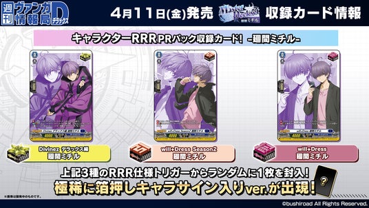さらに!各キャラクターのイラストを使用したRRR仕様のトリガーが3種類の中から1枚封入されたキャラクターRRRPRパックも同梱!極稀に箔押しキャラサインが入ったバージョンも出現します!