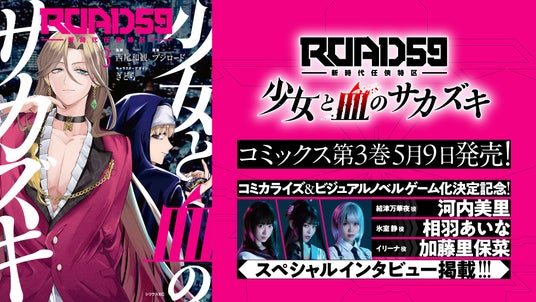 株式会社ブシロード(本社:東京都中野区、代表取締役社長:木谷高明)が原作のメディアミックスプロジェクト「ROAD59 -新時代任侠特区-」初のコミカライズ作品であり、週刊少年マガジン公式漫画アプリ「マガジンポケット(マガポケ)」にて連載されていた『ROAD59 -新時代任侠特区- 少女と血のサカズキ』単行本第3巻が2025年5月9日(金)に発売することが決定したことをお知らせいたします。