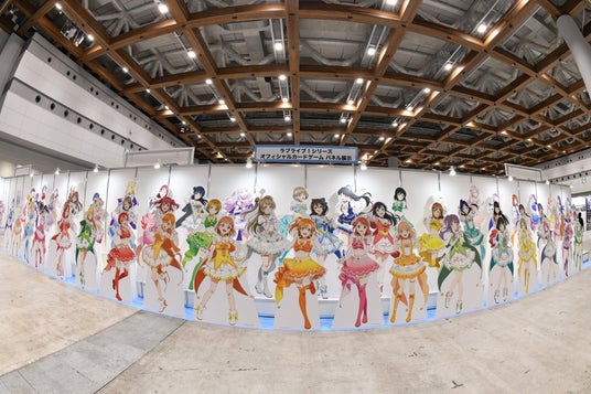 箔押しカードの実物展示や、ラブカ描きおろしの魔法少女風衣装を着た57人のスクールアイドルのスタンディ展示も実施いたしました。