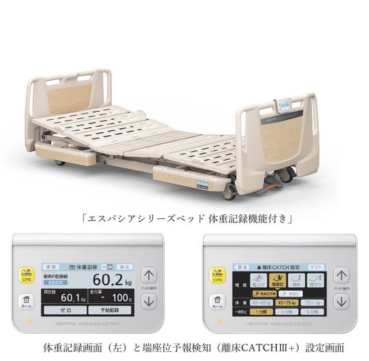 パラマウントベッド株式会社(本社:東京都江東区、代表取締役 社長執行役員:木村友彦、以下「当社」)は、当社で初めて、体重をベッドで自動測定・ベッドに記録できる介護施設向け電動ベッド「エスパシアシリーズベッド 体重記録機能付き」を2024年11月末に発売します。本製品は利用者の体重をベッドで自動測定・ベッドに記録し、さらに利用者がベッドの端に座り足を下ろした姿勢(端座位)に移動する動作を検知できる「端座位予報検知」(離床CATCHIII+)も搭載しています。当社は本製品を通して介護DX化を加速させ、職員の負担軽減や利用者へのきめ細やかなケアに貢献します。