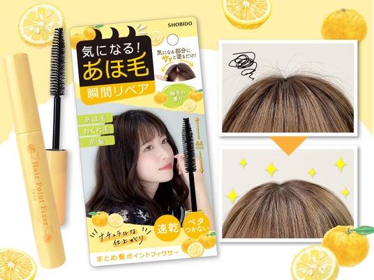 化粧品、化粧雑貨、服飾雑貨及びキャラクター雑貨等の企画・製造・販売、コンタクトレンズの企画・販売を行う粧美堂株式会社(本社:東京都港区、代表取締役社長:寺田正秀、以下 粧美堂)は、気になるアホ毛やおくれ毛、うまくまとまらない前髪もサッとひと塗りで瞬間リペアできる人気アイテム「まとめ髪ポイントフィクサー」から、<柚子の香り>を10月15日(火)より発売いたしました。