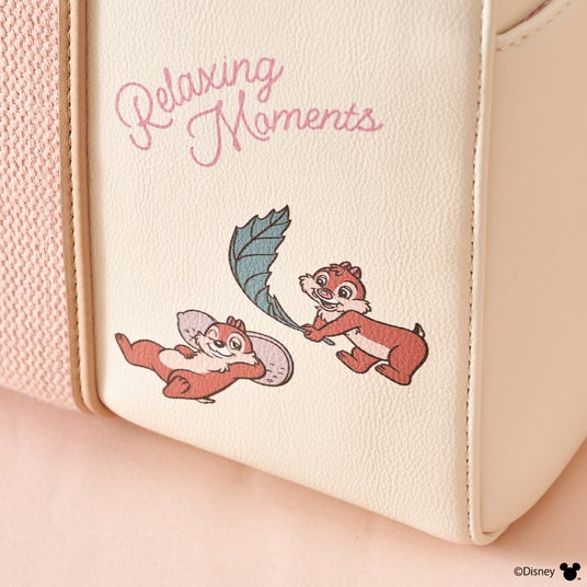 バッグ背面の右下には、「チップとデール」がリラックスしたアートをプリント。
