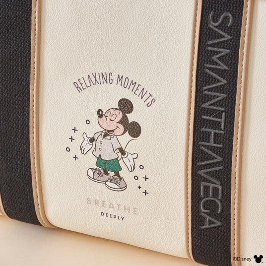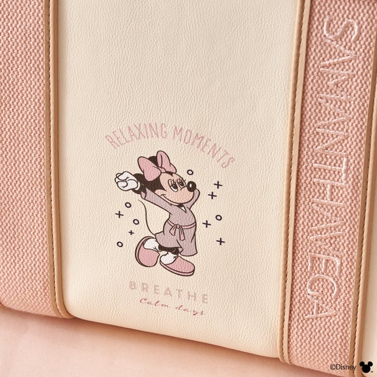 サマンサベガで大人気のロゴテープシリーズからリラックスをテーマにしたオリジナルデザインの「ミニーマウス」が可愛いトラベルシリーズのバッグ。「ミニーマウス」がリラックスしているサマンサベガオリジナルのアートがポイント。