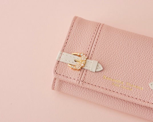 シリーズ累計売上が5万点を超えるサマンサタバサプチチョイスのロングセラー“フロントベルト“デザインの長財布。金運にも良いとされる「フロントのベルトを締める」デザインが、幅広い世代から人気。18のカードポケットに3のフリーポケットを完備し、長財布好きの方も大満足。「がま口」の仕様も人気のポイントです。