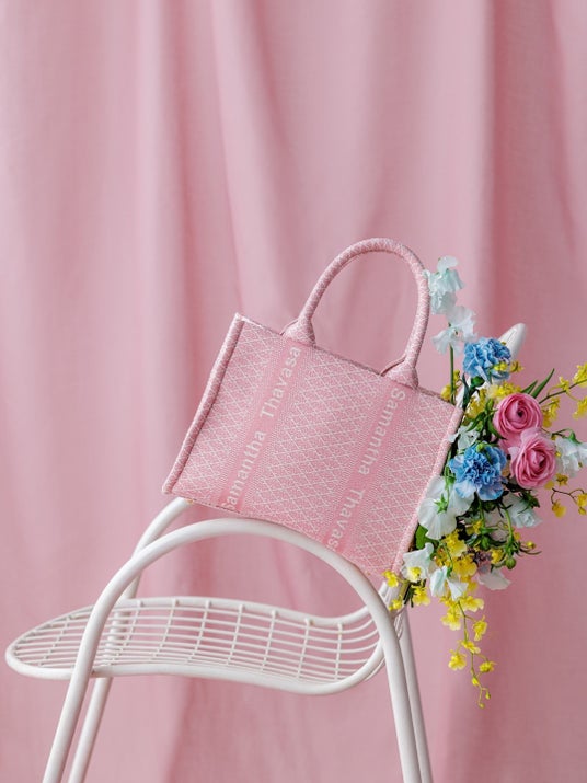 オリジナルジャガードシリーズから新色が登場。繊細な霧氷をイメージしたサマンサタバサらしい凛としたデザイン。ブランドロゴ部分を含めた、一つのパネルで完成していて一体感を表現。バッグの形に合わせてデザインを調整し、生地を作成しているのもポイントです。スタイリングのワンポイントに合わせて、オシャレな着こなしを完成させて。