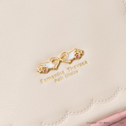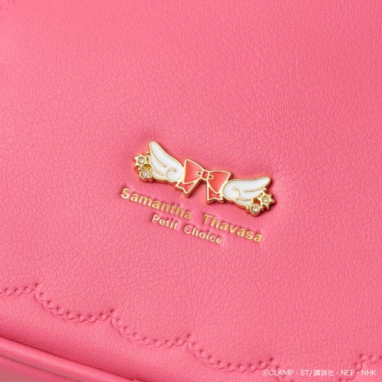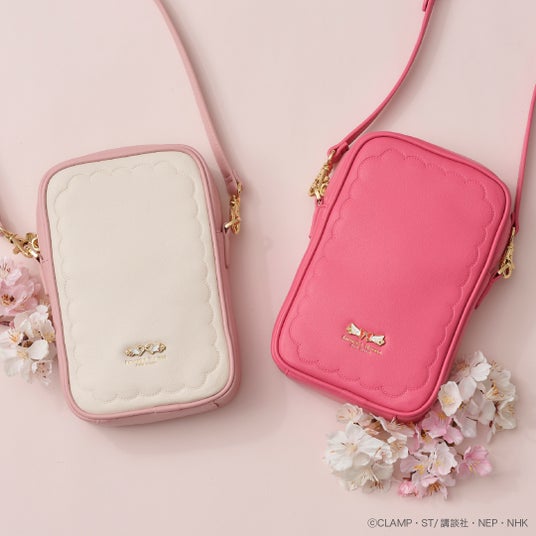「クロウカード編」「さくらカード編」のさくらちゃんのオープニング衣装をイメージした革小物とスマホショルダー。リボンと翼モチーフのオリジナル金具とスカラップ型のデザインもポイント。