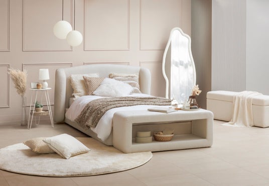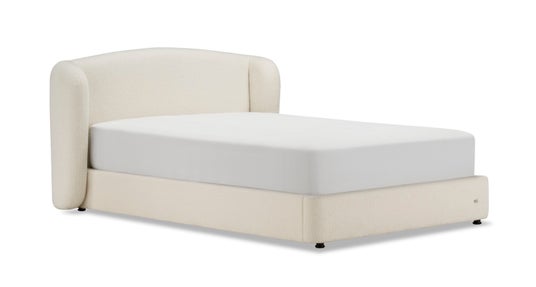 ループ状に織られた、ふんわりとした質感が魅力のブークレ生地を贅沢に採用。 トレンドを意識し、ホワイトや淡いグレーといった、近年人気のカラーを基調に、やわらかな曲線を取り入れたナチュラルテイストのデザインが、空間に優しく上品な印象をもたらします。