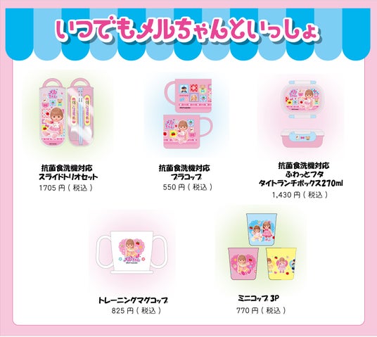 総合ファンシーグッズメーカーのスケーターより、メルちゃんのかわいいお弁当箱やコップなど、食事の時間を一緒に楽しめるグッズが6月上旬の下記5種類のラインナップをはじめとして順次発売となります。スケーター 公式オンラインショップ:https://www.skater-onlineshop.com/