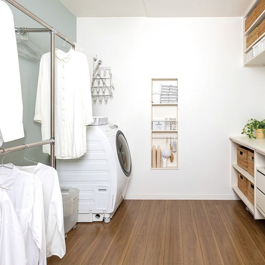 引き戸や窓に干渉しない室内干しプランなど、フレキシブルなプラン設計を可能としており、洗濯家事の効率を高めるランドリールームの有効活用をサポートします。