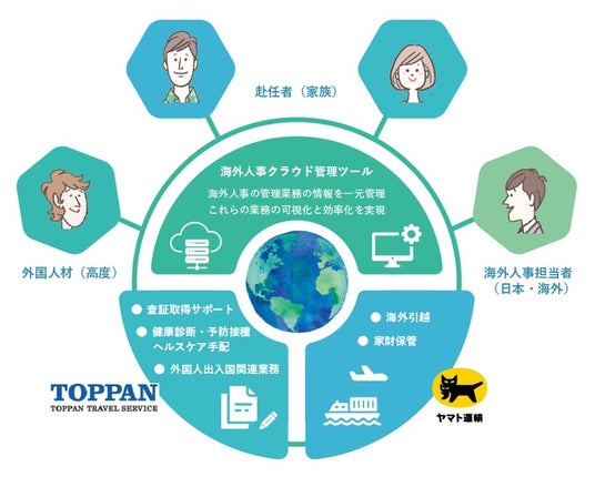 ヤマト運輸株式会社(本社:東京都中央区、代表取締役社長 長尾裕、以下「ヤマト運輸」)と株式会社トッパントラベルサービス(本社:東京都港区、代表取締役社長 島宗真太郎、以下「トッパントラベル」)は、海外赴任や外国人材受け入れに伴う、海外引越や海外赴任者の人事手続きなどをワンストップで支援する新サービス「グローバル人事コンシェルジュ」を、2025年2月3日(月)から提供を開始します。