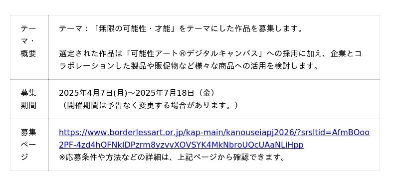■ 「可能性アート(R)プロジェクト2026」参加募集について