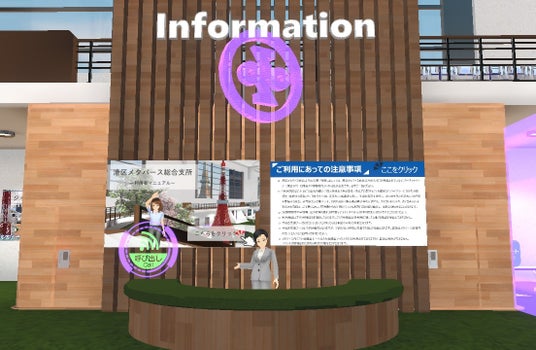 「港区メタバース総合支所」ではDNPの「メタバース役所」の行政の情報発信機能を利用し、区政に関する情報発信スペースを作成しました。本スペースでは、区の広報や取り組み等を発信する予定です。多様な情報発信を行うことで、より多くの方が情報にアクセスしやすくなることを期待しています。