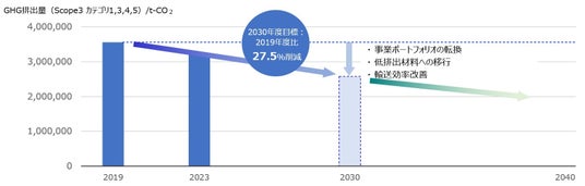 *5 Scope3の削減対象は、カテゴリ1(購入した製品・サービス)、カテゴリ3(Scope1,2に含まれない燃料及びエネルギー活動)、カテゴリ4(輸送、配送(上流))、カテゴリ5(事業から出る廃棄物)とした。