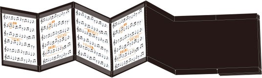 「カキコ ジャバラホルダー」はページの間にミシン目が入っており、好きなページでカットできるジャバラ状のホルダーです。24ポケット(片面12ポケット)と48ポケット(片面24ポケット)の2サイズがあり、楽譜の枚数や譜面台の大きさに合わせて好きな枚数をカットして使用できます。一般的に楽譜の製本は、手作業で厚紙などに楽譜を貼り付け、ジャバラ状にする場合が多いですが、本製品はハサミで好きな枚数にカットして楽譜を収納するだけで簡単に製本することができます。
