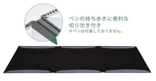 ペンの持ち歩きに便利な切り欠き付きです。