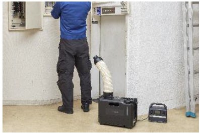本製品は環境に配慮したフロンレスでパワフルな2段階の気化冷却技術「TwinAqua」※1を採用しています。排気が熱くない※2ため使用エリアと排気エリアを分ける必要がありません。また、一般的なスポットクーラーと比べて消費電力を抑えることができ、ポータブル電源でも使用できます。さらに、持ち運べるコンパクトサイズのため、省スペースで場所を選ばずに使用でき、建物の設備メンテナンス、工事・建設現場、スポーツやイベントの会場、学校での部活動など幅広いシーンでご利用いただけます。