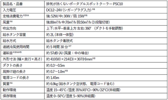「排気が熱くないポータブルスポットクーラー」PSC10