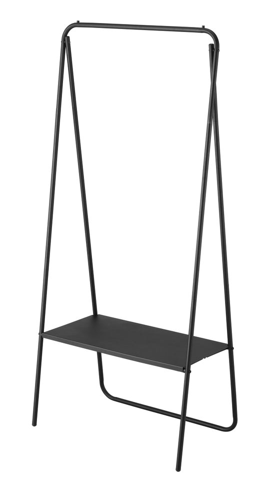 棚板付きで、棚上には洋服ブラシなどの小物を置くことができます。また棚板をはずせば、ロングワンピースなどの丈が長い衣類を掛けることもできます。