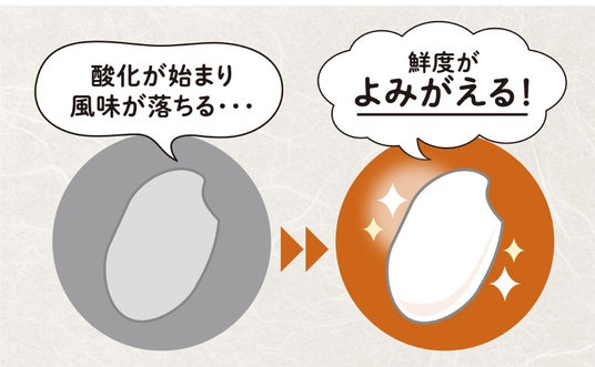 お米は精米された瞬間から酸化が始まり、風味が落ちてきます。市販の白米でもお米の表面を軽く削ることにより、鮮度を取り戻します。
