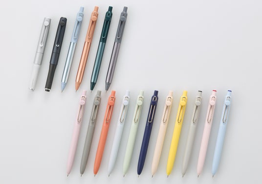 下段左から『uniball ZENTO Standard model』ラベンダー、クラウド、アドビ、シー、ミスト、コースタル、アイボリー、カナリア