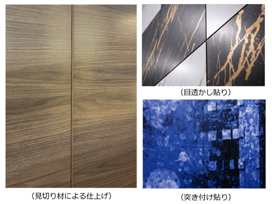 今回発売する「レーザーカットパネルW」と「レーザーカットパネルS」は、パネルの端部をレーザービームでカット。シャープに仕上げることで見切り材が不要となり、パネル間の隙間を空けた目透かし貼りでも上品な表現にすることができます。さらに「レーザーカットパネルW」では、パネル同士を突き合わせて施工する突き付け貼りも選ぶことができ、シームレスで1枚絵のようなダイナミックな表現が可能です。
