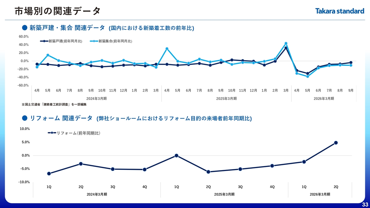 また、新築戸建においては、建築基準法改正の影響が第2四半期から出てくると想定していましたが、第2四半期におけるシステムキッチンの新築戸建の台数はほぼ前年並みで、市況を上回る結果を出せたと考えています。