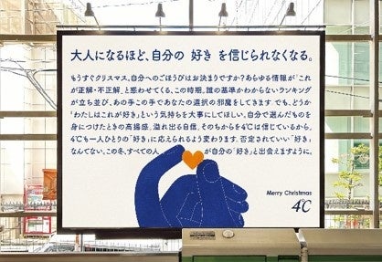 11月18日(月)~12月25日(水)には、4℃として初となる“メッセージ広告”をJR恵比寿駅にて展開します。