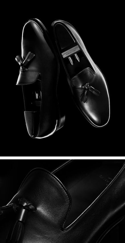 スーツからジーンズまでマッチするタッセルローファーを、ゼロシーム仕立ての特別仕様で作りました。本来はカジュアルシューズに属するデザインですが、研ぎ澄まされた一枚仕立てによって際立つエレガンスを宿した一足に仕上げました。前出の2モデルは三陽山長のマスターラスト「R2010」を採用していますが、「参/SAN」のラストはローファー専用の「R2010S」。甲をより低めに、ヒールカップをよりコンパクトに設計することで、靴紐のないローファーでもジャストフィットを実現しています。また、硬いリブテープを排して抜群に柔らかい履き心地を叶えたフレキシブルグッドイヤーウェルト製法で仕立てているのも「零」シリーズ共通の特徴。見た目の美しさだけでなく、快適さにもこだわっています。