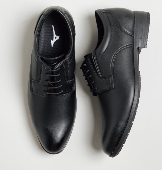 2020年2月よりスタートした、ミズノ株式会社とのビジネスシューズの共同企画は、毎年フォルムデザインを少しずつ変えながらお客様のニーズに合わせて進化してきました。2024年9月には、累計販売17万足を突破するなど多くのお客様から支持を得ていますが、今回のモデルはつま先のフォルムをスッキリとさせるだけでなく、かかと部分には「ミズノエナジー」を搭載し、これまで以上に進化したビジネスシューズとなっています。