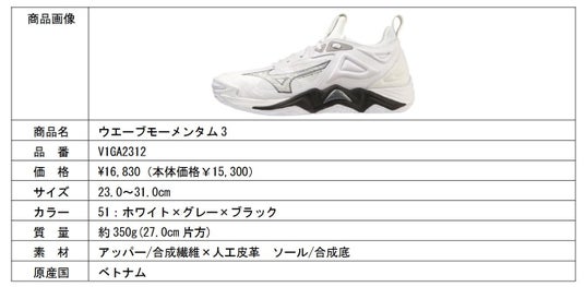 「ウエーブモーメンタム3」は、ジャンプ時に負荷のかかる前足部にミズノ独自の高反発素材『MIZUNO ENERZY(ミズノ エナジー)』を採用することで、より高いクッション性を追求しています。さらに独自の幅広のアウトソール形状により、高い安定性を実現しています。