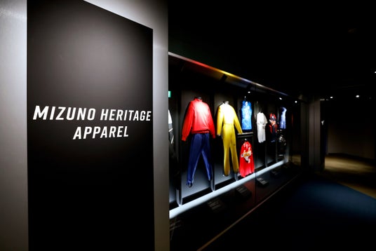 3階は、ミズノの過去の用具や、さまざまな競技の代表ウエア、ミズノがこれまで手掛けてきた多岐に渡るシューズを壁一面に展示しています。