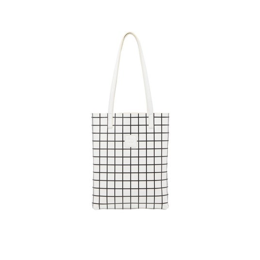 レトロなタイルをイメージした格子模様を、オリジナルレザーに大胆にプリント。