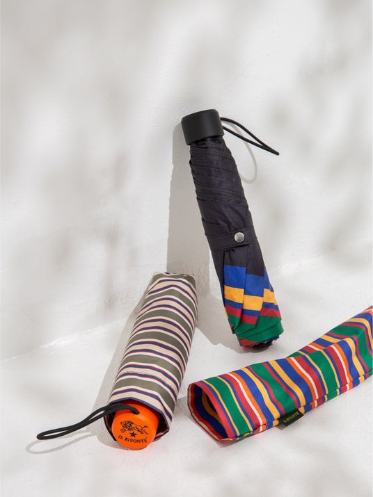 ブランドを代表するアイコニックなストライプからマルチカラーとベージュを採用。シンプルな装いに華やかさを添えるデザインに。晴雨兼用なうえにUVカットも兼ね備え、快適なおでかけシーンをサポートします。