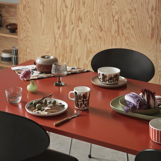 ラインナップには、人気の2.5dlマグカップや5dlボウルなどのテーブルウェアをはじめ、50×50cmクッションカバーなどのファブリックアイテムも揃い、秋の暮らしを優しく彩ります。