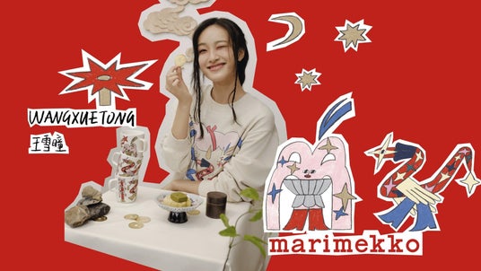 本コレクションでは、中国神話の幸運の蛇をはじめとするシュエトン・ワンの独創的なアートワークがマリメッコのアイテムに新たな魅力をもたらしています。シュエトン・ワンの自由で柔らかな表現とマリメッコのデザイン哲学が融合し、新年にふさわしい希望と喜びを感じさせるコレクションが誕生しました。プリントに登場するキャラクターは中国文化において縁起の良いモチーフをもとに描かれています。蛇は幸運を象徴する特別な存在とされ、流れ星や願いの木、雨粒には未来への希望や繁栄への祈りが込められています。
