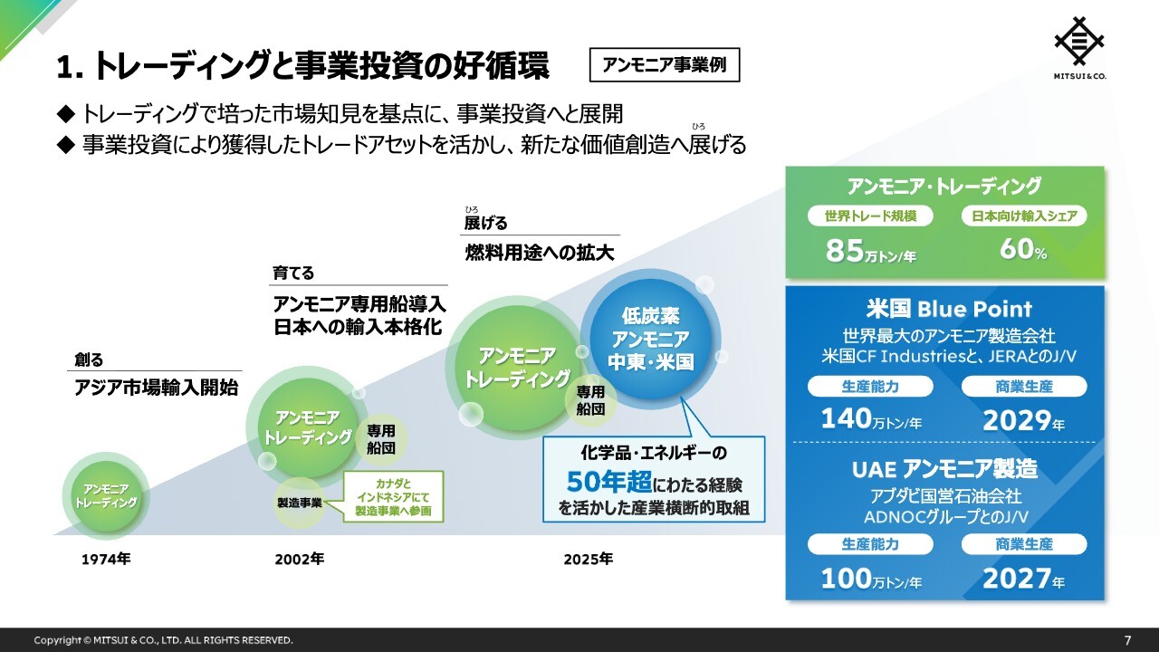 1.トレーディングと事業投資の好循環 アンモニア事業例